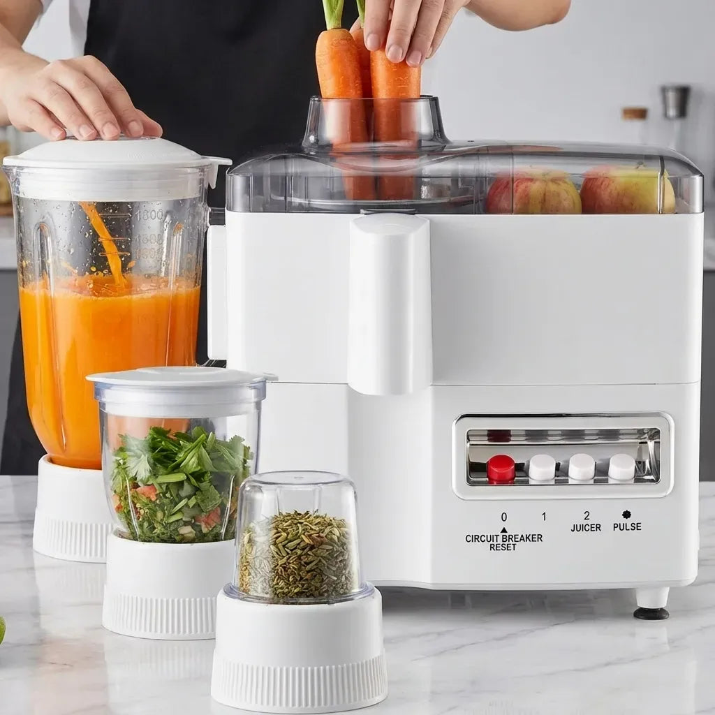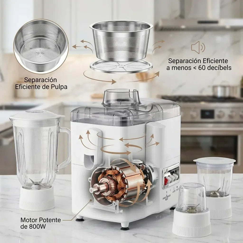 4 en 1 Extractor, licuadora 1.5 l, picadora y molino de cafe y granos